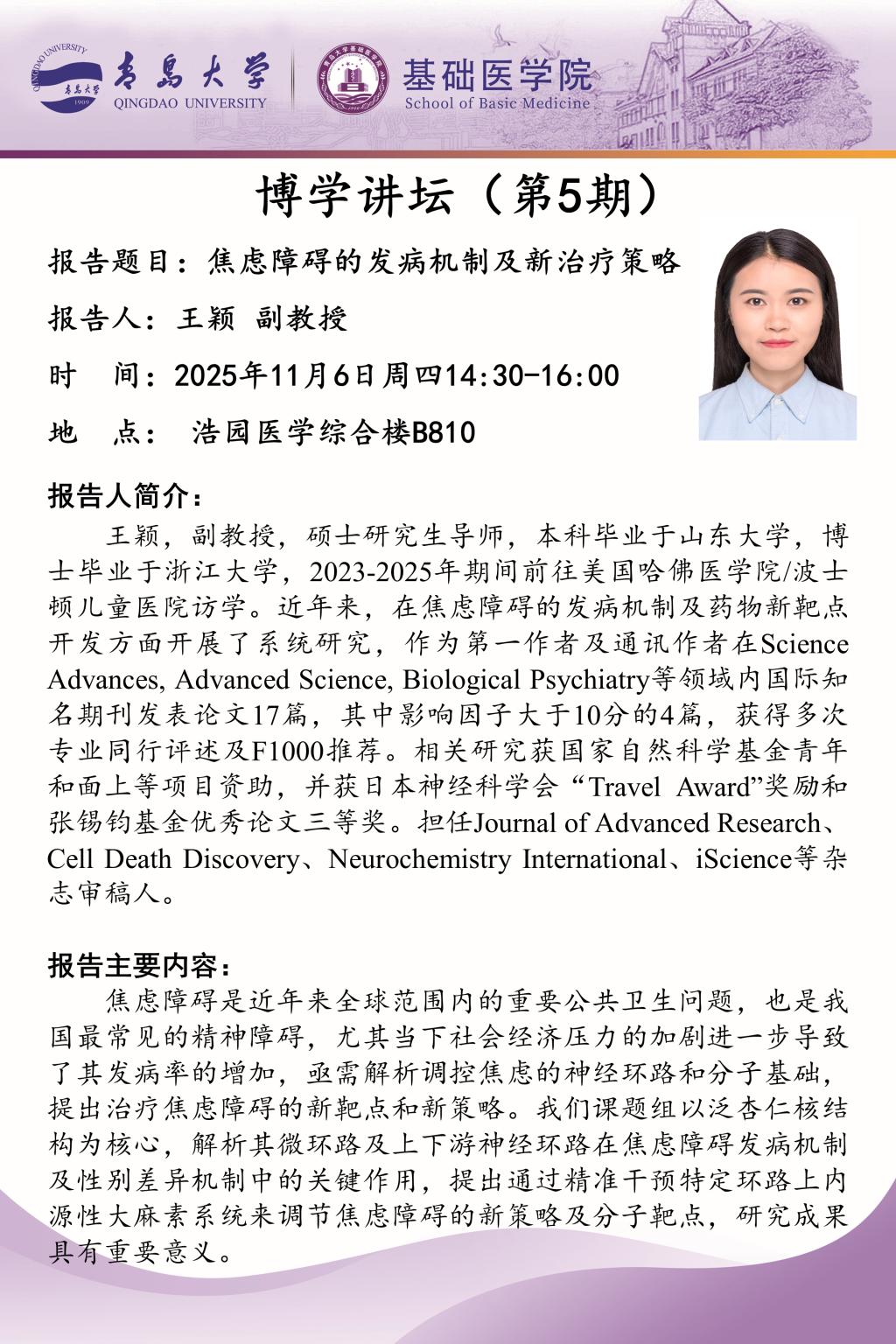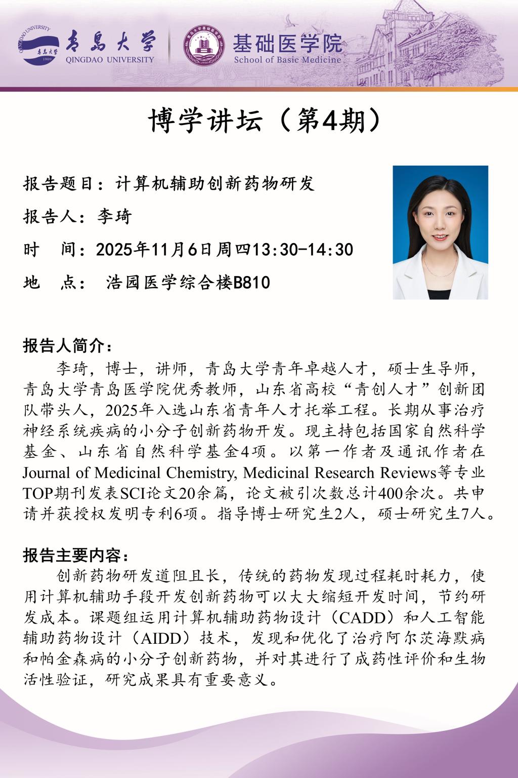本场讲座将采取线下报告的形式,地点在浩园医学综合大楼B座810会议室。